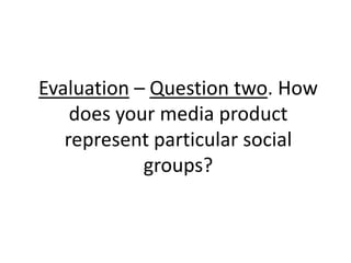 This document evaluates how a media product represents particular social groups. The creator aimed their pop music magazine at older teenagers aged 16-19. To represent this social group, the magazine uses sophisticated black and white photos with minimal colors rather than bright colorful images typically seen in magazines for younger audiences. The photos show strong poses and feature themes like tour rumors that would interest older teenagers. While mainly targeting females interested in pop music gossip and fashion, the magazine also appeals to males fans of pop music with its subtle color scheme of black, grey, white and pink rather than overly feminine colors.