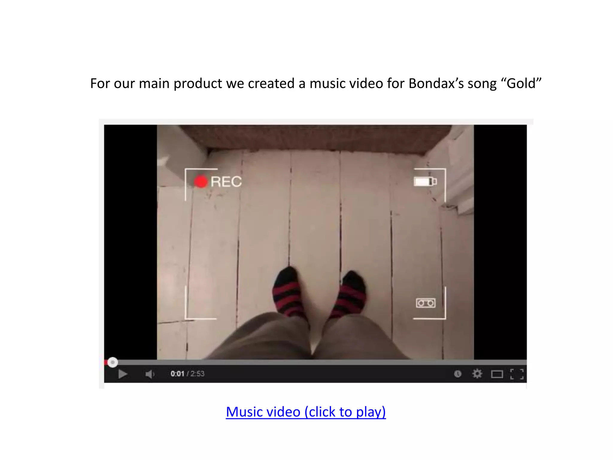 The document discusses how a music video, album, and magazine advert for the song "Gold" by Bondax were created as a promotional package. A recurring image of a young girl from the music video was used in all three products to connect them visually. Gold props and coloring were also emphasized across the products. Feedback confirmed the products effectively reflected the electronic music genre and style through their common themes and effects.