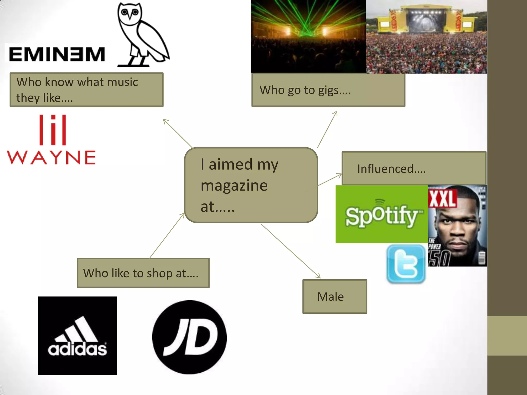 The document summarizes the key details about the intended audience and purpose of a proposed hip-hop music magazine. The primary audience would be mostly males aged 16-24 who are interested in hip-hop music, graffiti, and dance. The magazine aims to fill a gap in the market for a hip-hop focused publication. It would have a similar audience to the magazine Vibe but be more mainstream.