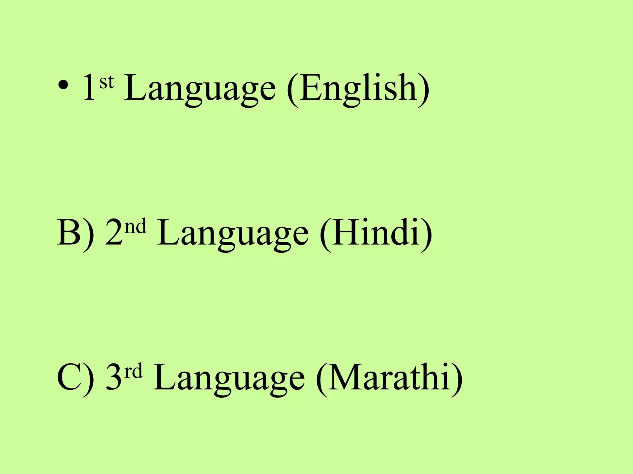 - Languages are evaluated through written exams worth 80 marks and orals worth 20 marks each semester totaling 100 marks.