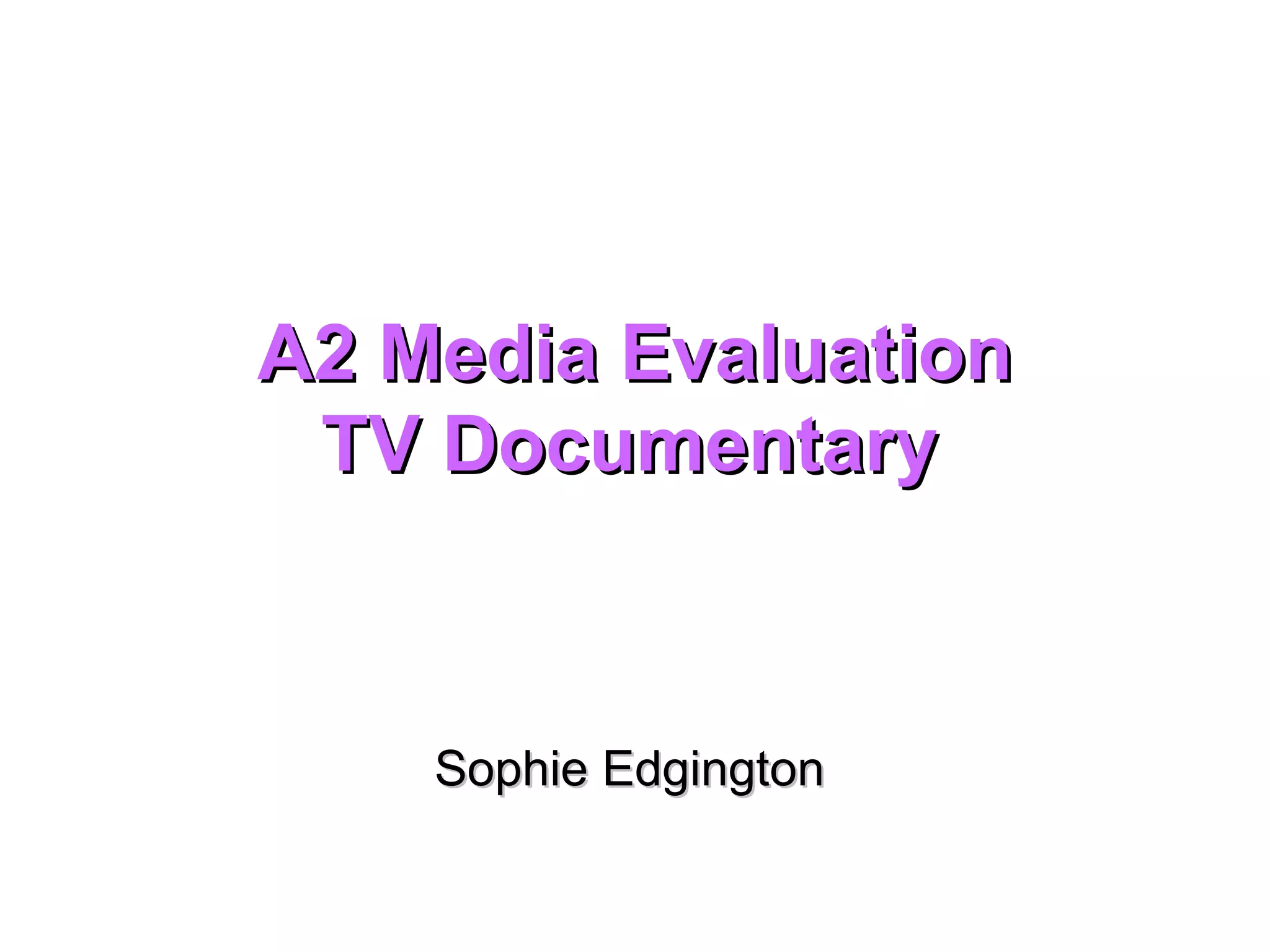 The document discusses how the media product, a TV documentary, uses conventions from real documentaries. It includes three expert interviews, a voiceover, backing music, and opening montage to set up the topic. Vox pops from students are included to represent different opinions on the topic. Captions are used during interviews to identify the expert and their topic expertise. Transitions fade between clips to make them flow smoothly. The documentary follows conventions like those seen in documentaries like "Supersize Me" to appear professional and informative for the audience.