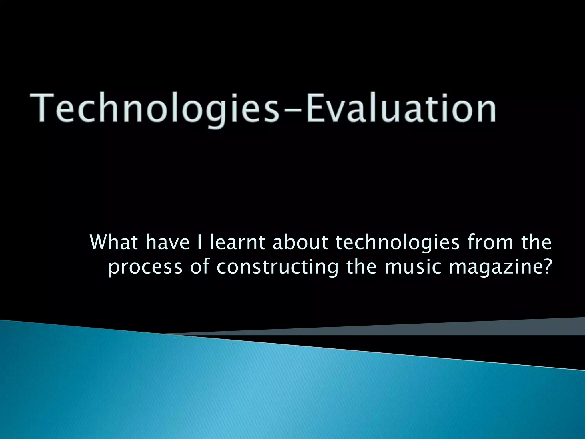The document discusses the technologies used to create a music magazine, including Microsoft PowerPoint, Adobe Photoshop, an HD digital camera, the internet, Apple computers, and Paint. PowerPoint allowed layout adjustments and Photoshop improved image quality. New skills were developed in magazine design and software use. Future magazines could utilize more advanced publishing software.