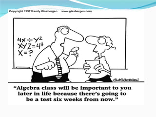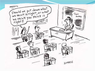 The document discusses key concepts in language testing and evaluation. It defines important terms like validity, reliability, and practicality that are characteristics of a good test. It also distinguishes between different types of tests like placement, diagnostic, progress, and proficiency tests. Furthermore, it explains the differences between discrete point testing versus integrative testing and direct versus indirect test items. The overall purpose of evaluation is to measure student learning, teaching effectiveness, and provide feedback to improve instruction.