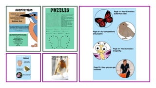 The document provides a summary of the evaluation research conducted for a project with the Yorkshire Wildlife Trust (YWT). In the first week, the researcher chose target audiences of Karen, a single mother living in Hull, and Phoebe based on profiles provided by YWT. Research was conducted on websites to understand the demographics and socioeconomic status of Karen. The second week involved planning ideas including magazines for kids and adults focusing on Askham Bog wildlife. Mood boards were created and fact files researched. The production weeks involved creating illustrations, articles, and designing the magazine template layout. Overall, the researcher felt their research was strong and they created a 24-page magazine on time with their illustrations being a strength but some could have been improved