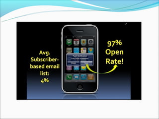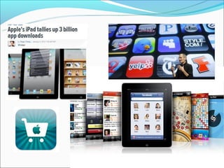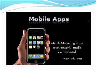 The presentation discusses the growth of mobile apps and importance of businesses developing mobile apps, noting that by 2015 mobile app development projects will outnumber PC projects 4 to 1 and highlighting key benefits for businesses such as allowing customers to access information easily and promoting the business through features like push notifications, coupons, and social media integration. Industries well-suited for mobile apps include lawyers, realtors, restaurants, fitness gyms, hotels, and auto dealerships. Developing a mobile app can help businesses compete by allowing customers to access information anywhere and promoting customer engagement through the app.