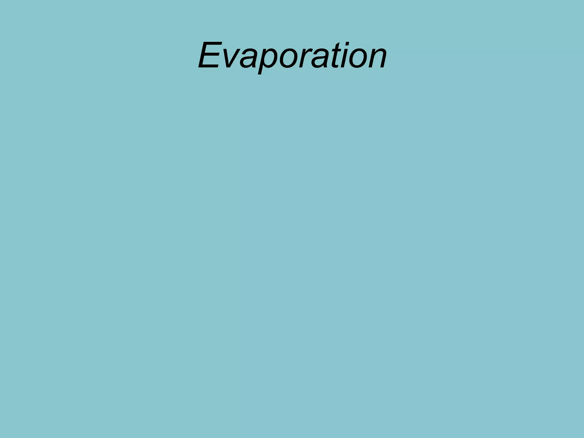 This document discusses various processes of evaporation and methods for estimating evaporation and evapotranspiration rates. It defines evaporation, transpiration, and sublimation and describes factors that influence evaporation like energy supply, transport of vapor, and vegetated surfaces. Methods for estimating evaporation rates include the energy balance method, aerodynamic method, and combined method. The document also provides an example calculation using the combined method.