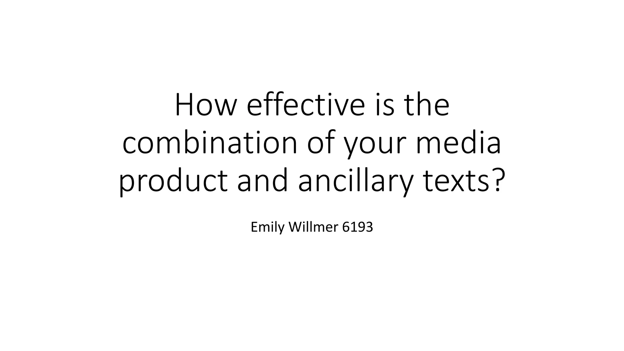 The student produced a music video, poster, and digipak for an artist. The music video and poster are most effectively linked through their similar colors and location featured in both. However, linking the text between the two could have improved synergy. The digipak has the least synergy due to different colors and fonts compared to the other works. Audiences felt the poster corresponded better to the music video. Matching fonts and colors across all products would have improved the synergistic combination.