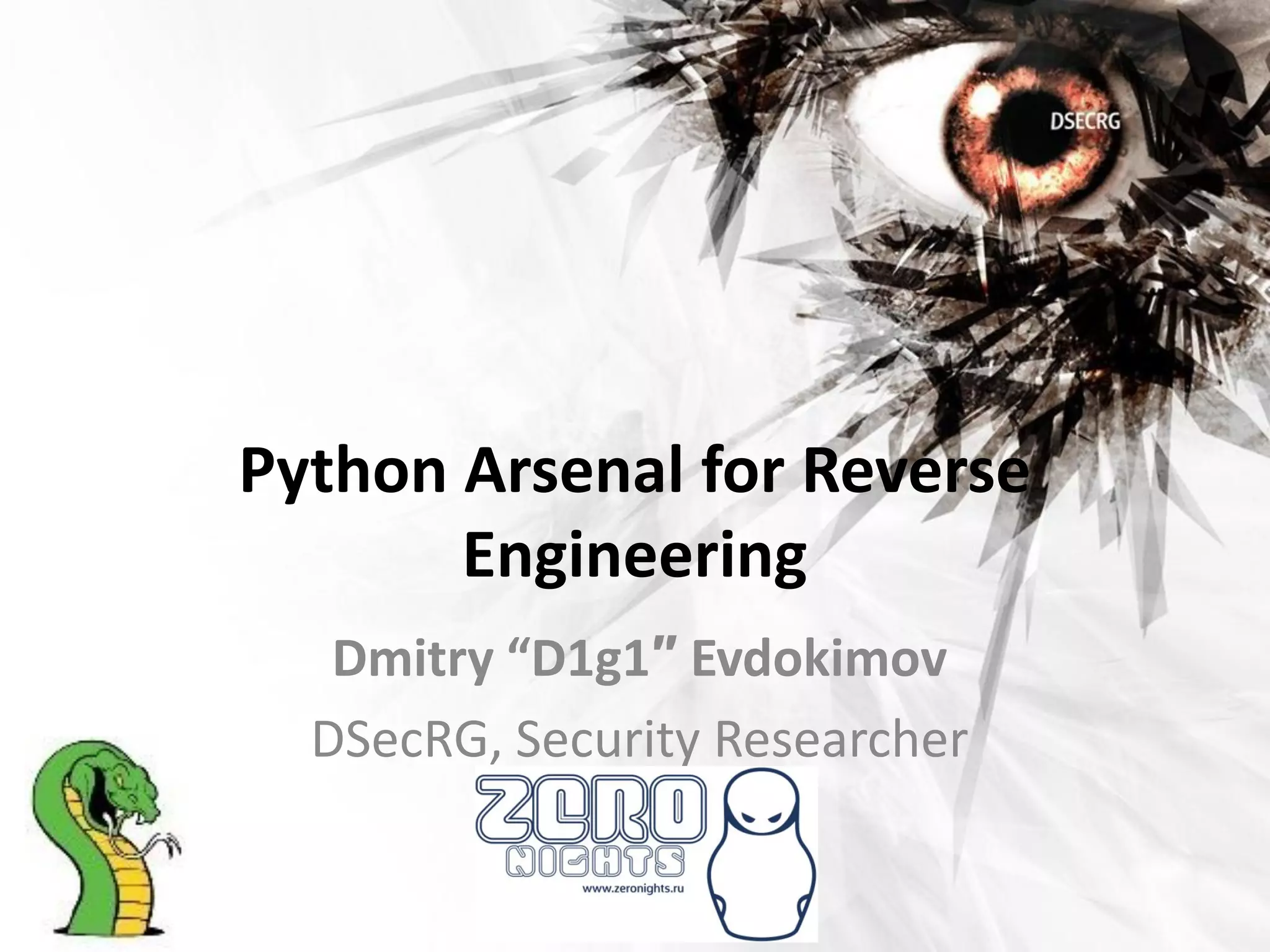 This document discusses Python tools for reverse engineering. It introduces the author and their background in security research. It then provides an overview of existing Python libraries for reverse engineering tasks like disassembly, debugging, fuzzing, and analysis. These include libraries that interface with tools like IDA Pro, gdb, bochs, and more. The document proposes creating a web portal to catalog these Python reverse engineering tools, including descriptions and a search function. It concludes by soliciting feedback on the idea and future work.