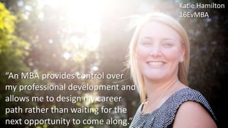 The document contains testimonials from students in Goizueta's Evening MBA Program. It highlights several key reasons for pursuing an MBA at Goizueta, including gaining an internationally respected education while continuing one's career, taking control of one's professional development and career path, accessing Goizueta's strong global and Asian alumni networks, developing business and leadership skills to advance one's career, and surrounding oneself with ambitious peers.