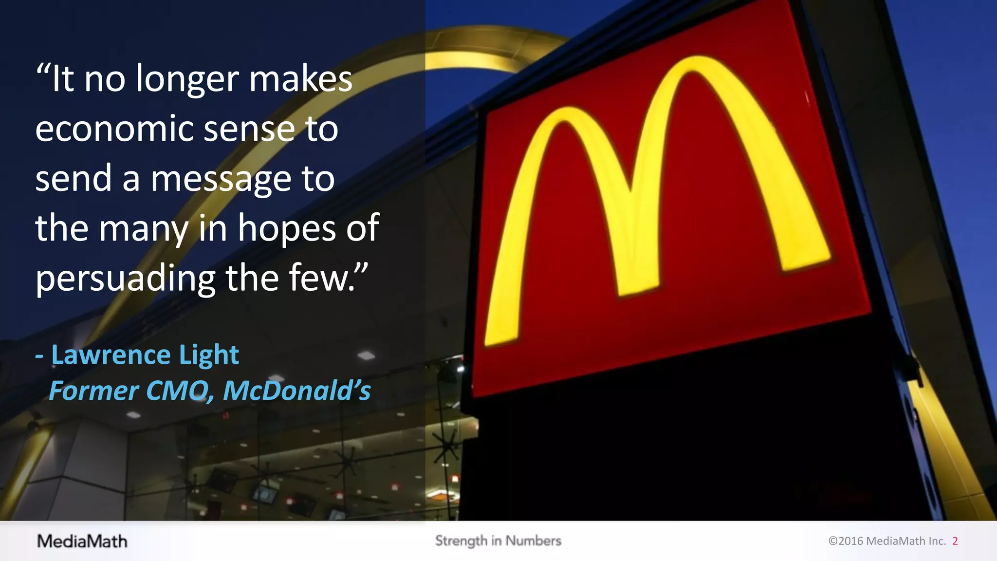 The document discusses the evolution and growth of programmatic advertising. It begins with an overview of how programmatic has transformed audiences, media, intelligence, talent, and platforms in the US since the 1990s. It then discusses how these changes have benefited marketers by shifting power from publishers to advertisers, enabling true audience targeting, providing unified views of customers, and allowing for omni-channel campaigns. The document concludes by predicting that programmatic will continue growing globally and that many major brands are committing to programmatic-first strategies to improve ROI.
