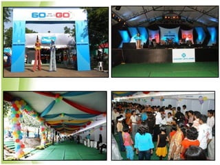The document summarizes the services provided by Dreams Events, an event planning company. It outlines their experience organizing various types of corporate and individual events across multiple cities in India. Dreams Events claims they can conceptualize, plan, and execute all types of events from product launches and conferences to weddings and concerts to meet clients' needs and objectives. The document highlights some of their clients and examples of past events organized.