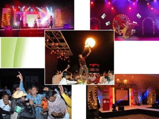 The document summarizes the services provided by Dreams Events, an event planning company. It outlines their experience organizing various types of corporate and individual events across multiple cities in India. Dreams Events claims they can conceptualize, plan, and execute all types of events from product launches and conferences to weddings and concerts to meet clients' needs and objectives. The document highlights some of their clients and examples of past events organized.