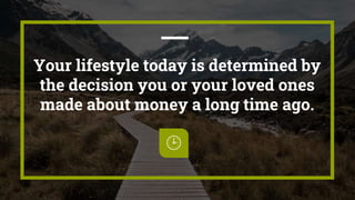 This document promotes attending a seminar on strategies for managing money and achieving financial goals. It discusses common struggles with finances and the importance of managing money to fulfill dreams. The seminar will provide education on growing savings through tax-advantaged accounts and investment vehicles. Attendees can learn about building residual income by joining the financial services industry and developing their own business in it. Success stories are shared of individuals earning $5,000-$40,000 monthly from the opportunity. The conclusion encourages asking questions at a follow-up meeting to gain clarity and potentially starting a business or proper savings habits.