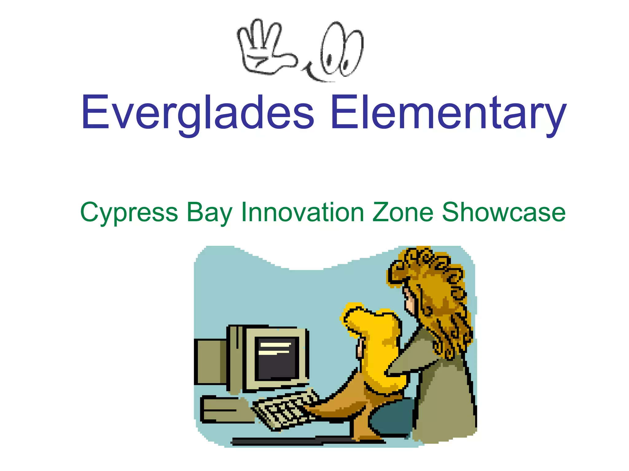 Everglades Elementary students use various technologies like Compass Learning, First in Math, and active slates in the computer lab and classroom to work at their own pace on reading, math, and other subjects. Fifth grade students produce a morning show where they have specific jobs like announcing the daily menu or working behind the scenes operating cameras, giving students experience with technology.
