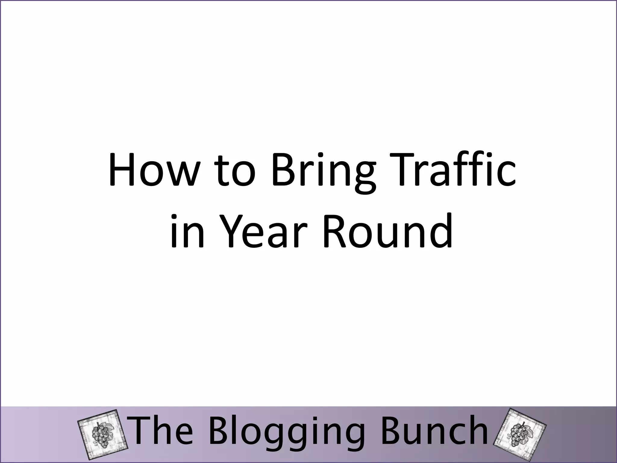 The document outlines strategies for generating year-round traffic through blogging by emphasizing the need for three types of content: current, seasonal, and evergreen. It defines evergreen content as universally relevant material that remains foundational, providing examples and suggesting methods for creating such content, including using long-tail keywords with low competition. Additionally, it recommends a content plan that involves posting one current, one seasonal, and one evergreen article each week.