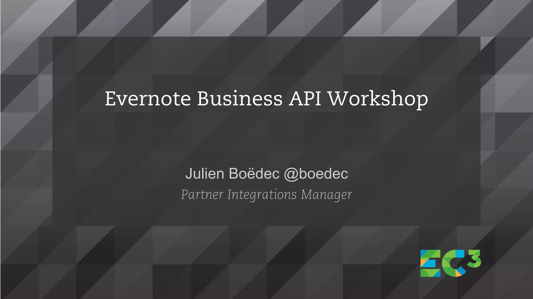 The Evernote Business API workshop covers understanding the Evernote Business model, utilizing the Evernote API, and includes practical code walkthroughs for developers. Key topics include connecting to business accounts, creating and searching for notes, and managing notebooks using the API. The session also features a showcase of partner integrations and resources available for developers.