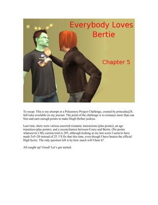 Bertie felt affectionate towards Vanessa, upsetting Corey and traumatizing little Bertie. Despite attempts to reconcile relationships, tensions remained high. The player tried unsuccessfully to move Robert in to fill the space left by the late dog Reuben. The round resulted in a low score of 5 points due to the relationship conflicts.
