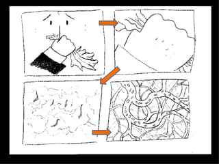 A presenter gave a presentation on evolution but was interrupted when they became infected with a virus. The virus spread through sneezing and changed over time through multiple infections, demonstrating the concept of evolution. However, when the presenter recovered but the virus further evolved, their antibodies were unable to recognize and fight the new strain of the virus, allowing them to become reinfected.