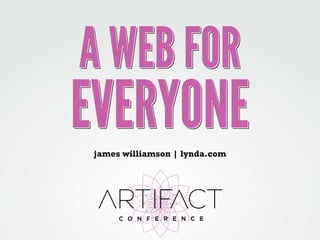 James Williamson emphasizes the importance of maintaining an open and accessible web amid threats from political and corporate interests. He discusses the potential challenges of linkability, discoverability, and accessibility as content shifts towards applications. Williamson encourages designers and developers to advocate for better web standards, support accessibility, and contribute to a web that empowers everyone.