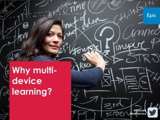 The document outlines a multi-device learning strategy emphasizing the importance of accessibility and effectiveness in learning for diverse audiences, particularly within the NHS. It presents five steps for implementing this strategy: reviewing learning provisions, establishing objectives, reviewing technology, deciding on development approaches, and distributing content. The findings highlight the benefits of multi-device learning, including 'found' time for learning and improvements in user experience through adaptive technology.