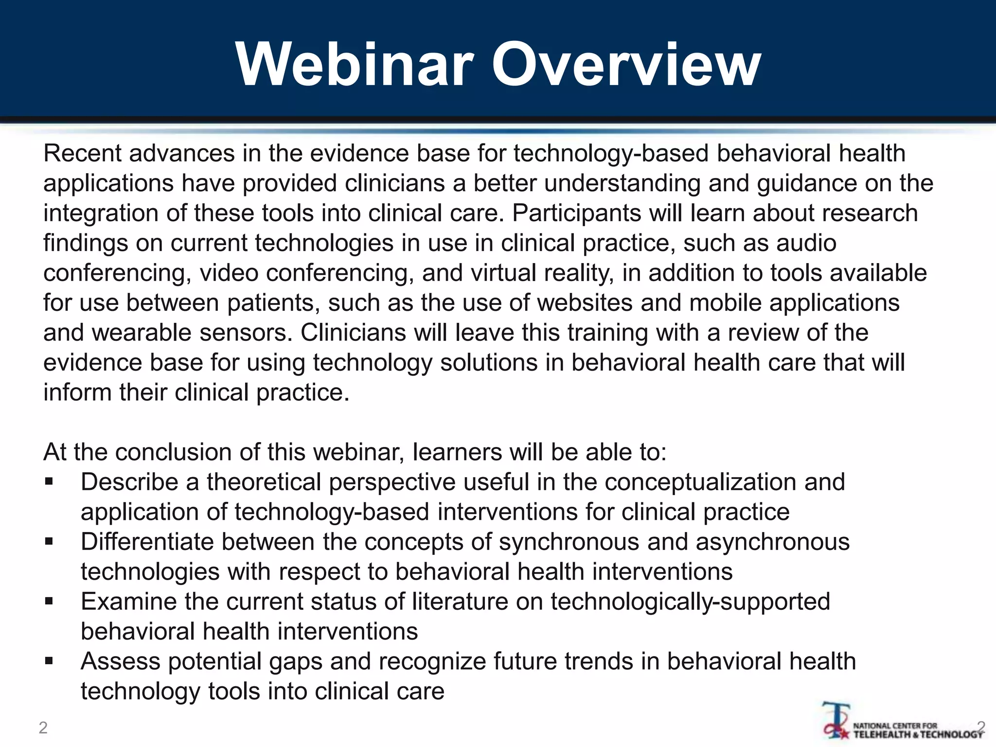 The document provides insights into the evidence base for integrating technology solutions in behavioral health care, highlighting practical applications of technologies such as video conferencing, mobile apps, and wearable sensors. It also discusses the theoretical frameworks guiding the use of synchronous and asynchronous technologies, current literature on effectiveness, and future trends in behavioral health technology. Clinicians will gain knowledge to enhance their practice through the use of these emerging tools.