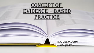 Evidence-based practice (EBP) in nursing is defined as a process that integrates the best evidence from literature, clinical expertise, and patient preferences to enhance nursing care quality. The EBP process involves formulating clinical questions, acquiring and appraising evidence, and applying findings to practice, ultimately aiming for better patient outcomes. However, various challenges such as lack of research skills, time constraints, and resistance to change hinder the adoption of EBP among nurses.