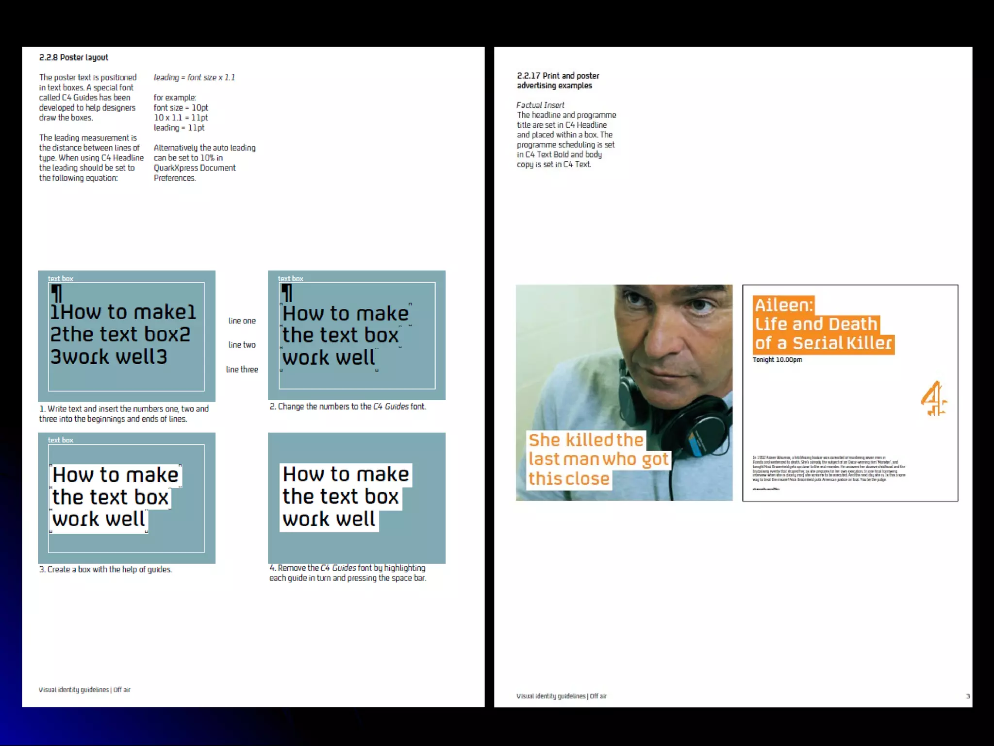 This document provides an introduction to Channel 4's style guide for creating factual program inserts. It discusses key elements Channel 4 looks for in promotional materials such as unique fonts, consistent color schemes, prominent logos and positioning, and using representative imagery. The document also shows examples of how these style elements have been applied in fictional Channel 4 inserts created by the author as a template to develop their own factual insert promotional material.