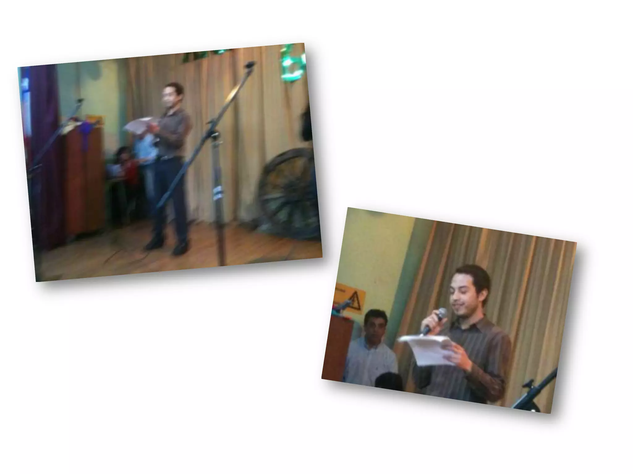 This document summarizes Diego Ulloa Iglesias' experience as a student teacher during the Professional Teaching Practicum 2012. It includes pictures from his development as an English teacher, head teacher organizing fundraising events, collaborative teacher at the school anniversary, and social actor at various school events. The document concludes with pictures from a cocktail party where the school staff recognized Diego and other student teachers for their work.