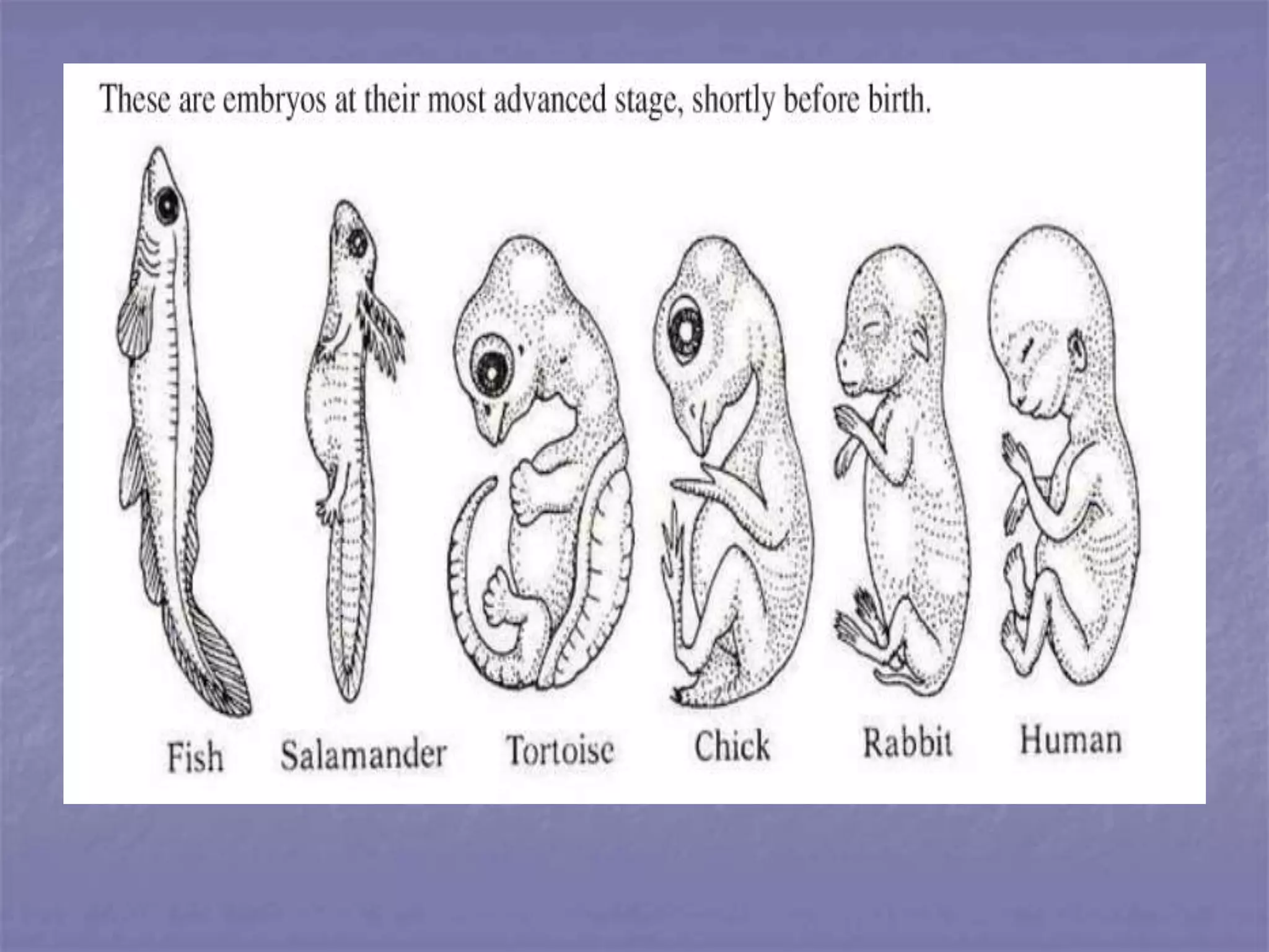 3) Embryological patterns indicate a shared ancestry as different species pass through similar early developmental stages.
