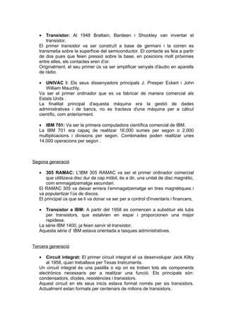 • ENIAC: L’ENIAC es considerat el primer ordinador totalment digital.