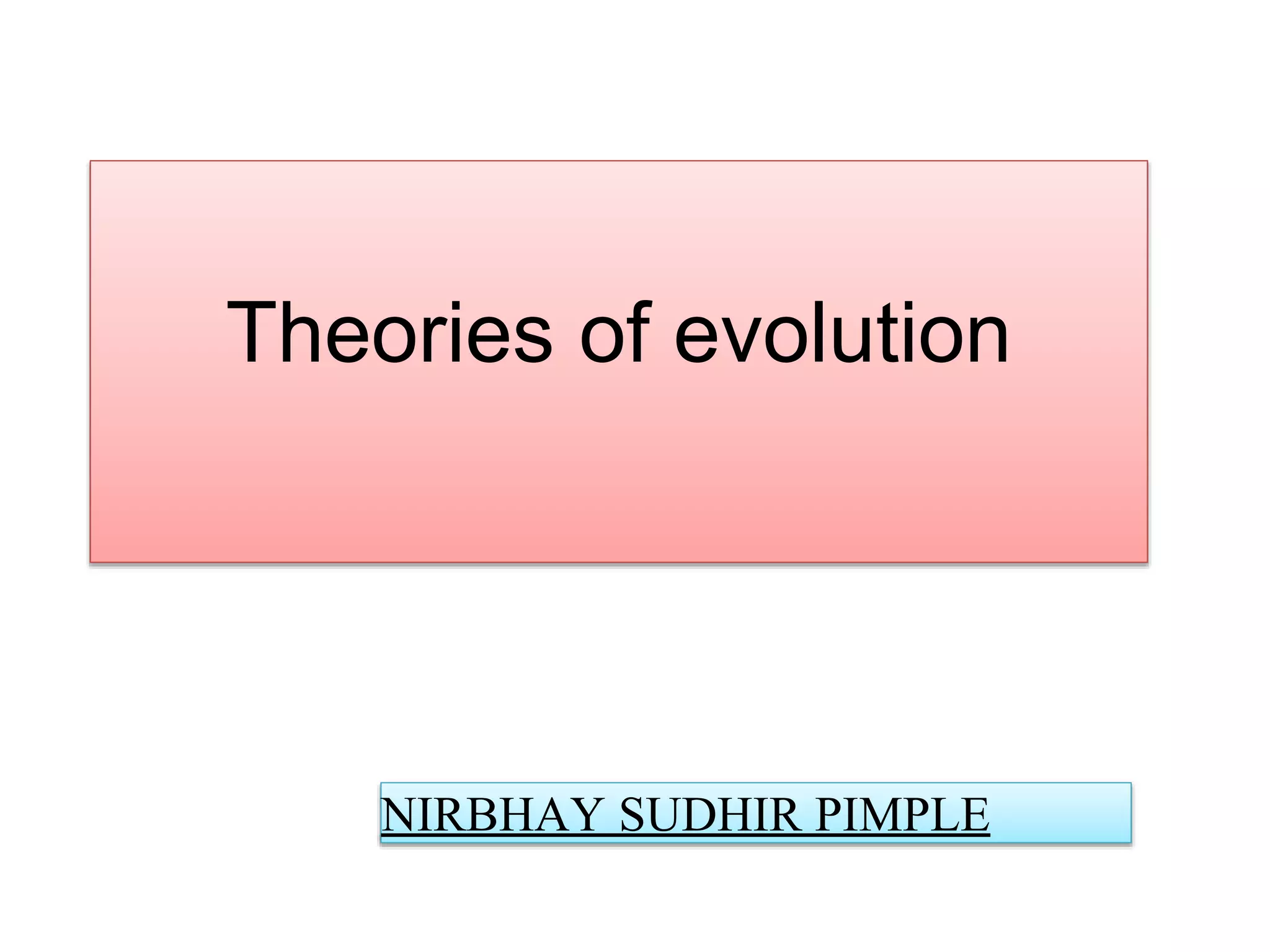 3. It discusses Hugo de Vries' mutation theory which proposed evolution occurs through accumulation of mutations in genes.