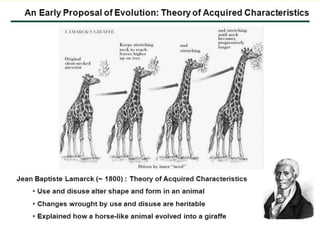 The document discusses the theory of evolution, highlighting key figures such as Pierre Louis Maupertuis, Karl Ernst von Baer, Thomas Malthus, Jean-Baptiste Lamarck, Charles Darwin, and Alfred Russel Wallace, who contributed to our understanding of adaptation and natural selection. It explains various mechanisms of evolution, including natural selection, genetic hitchhiking, and types of reproductive isolation, along with definitions of adaptations. The last universal common ancestor is also mentioned as the earliest ancestor of all current life on Earth.