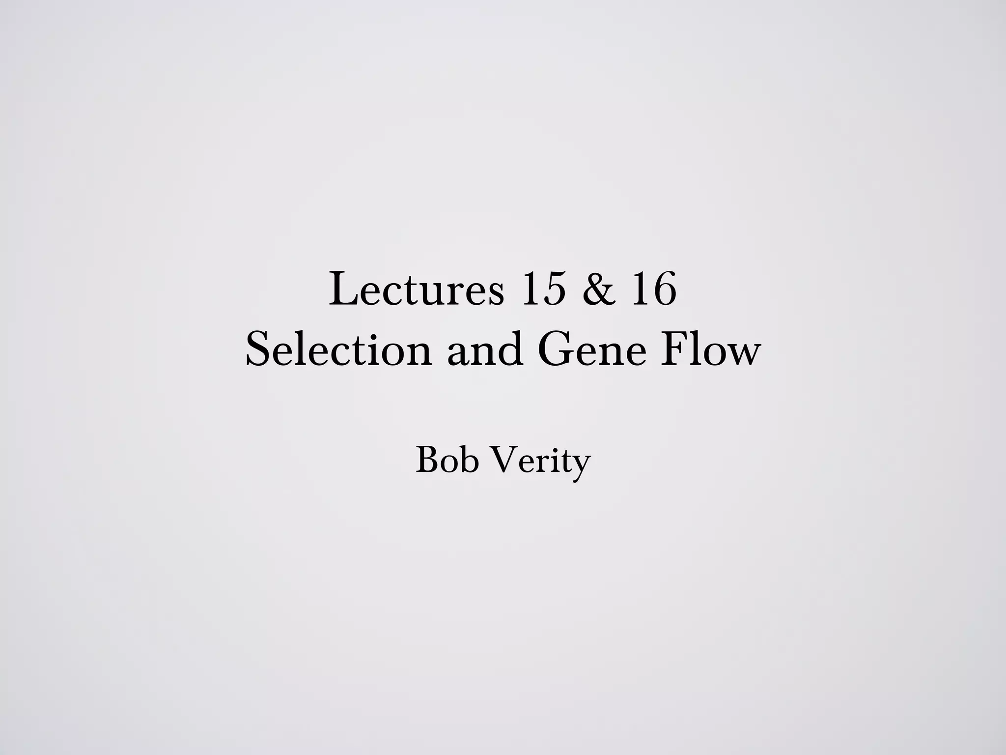 The document discusses the principles of selection and gene flow in evolutionary biology, referencing Darwin's seminal work on natural selection and its implications on allele frequencies. It outlines different types of selection, including dominance, recessiveness, heterozygote advantage, and disadvantage, along with the significance of gene flow in maintaining genetic diversity between populations. Additionally, it explores the formation of hybrid zones and allele frequency clines, illustrated through examples such as the peppered moth and sickle-cell anemia.