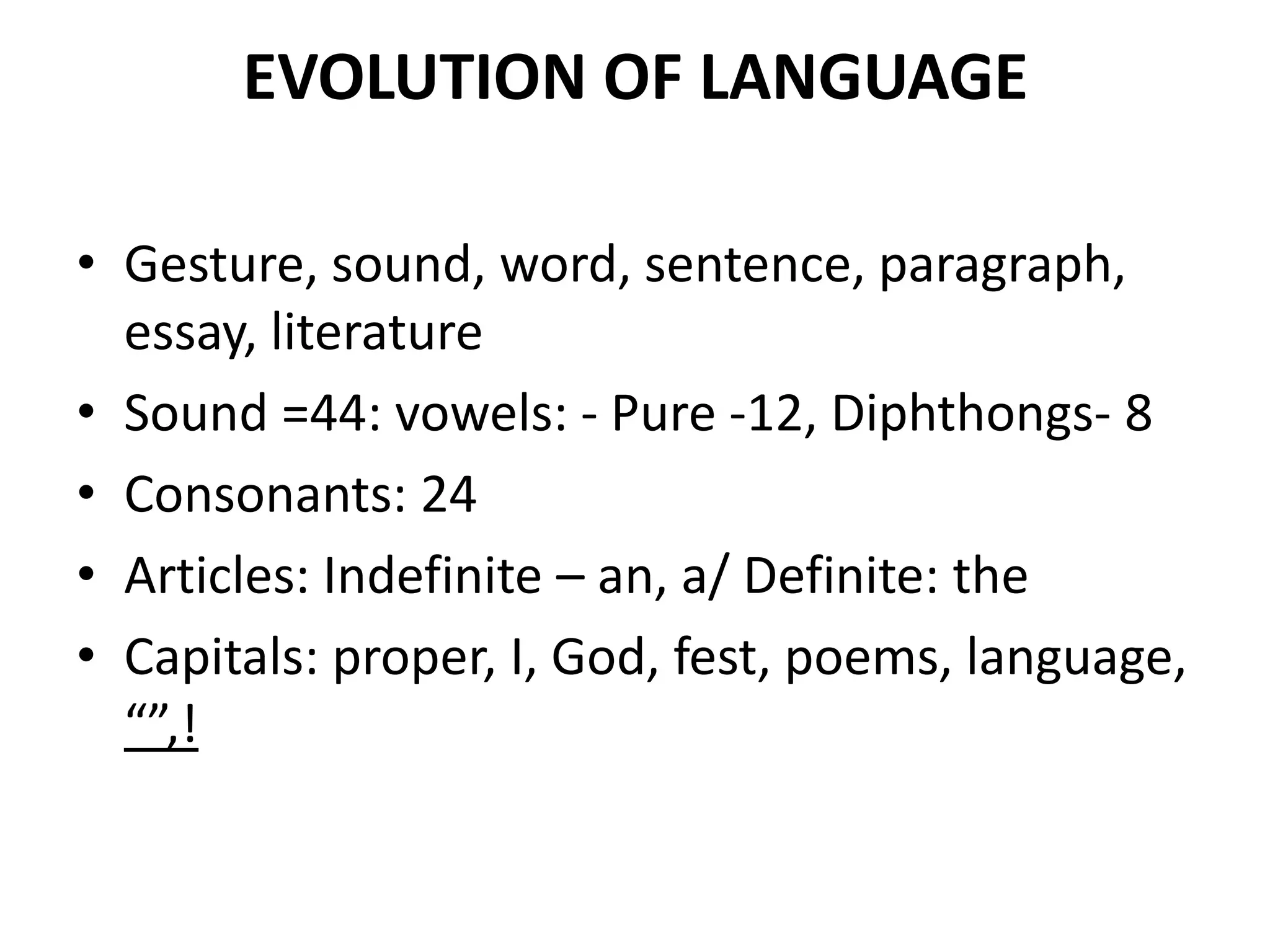 The document summarizes the evolution of the English language over time. It discusses how English originated from earlier languages like Anglo-Frisian and was influenced by other languages such as French, Danish, and Italian. It also touched on some of the structural changes the language underwent, transitioning from having cases and genders to a simpler grammatical structure with fewer inflections. The modern English language continues to be influenced by languages from around the world due to globalization and migration.