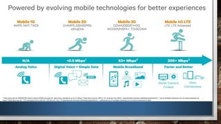 5G will establish a unified global standard for wireless technology using open wireless architecture. It aims to provide speeds from 1-10Gbps with 1000x greater bandwidth per unit area using frequencies from 3-300GHz. 6G is proposed to integrate 5G with satellite networks for global coverage and provide data rates up to 11Gbps while traveling. 7G deals with space roaming by allowing for uninterrupted connectivity anywhere on Earth or in space through wireless networks and satellite integration.