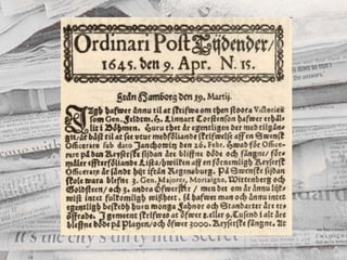 The document traces the evolution of newspapers from their origins in ancient Rome to modern publications. It discusses some of the earliest newspaper-like publications including Acta Diurna in Rome in 59 BC, Notizie Scritte in Venice in 1556, and Relation in Antwerp in 1605 as the first weekly printed publication. It then outlines the development of newspapers in various countries and regions, highlighting important publications such as La Gazette in France in 1631, Post-och Inrikes Tidningar in Sweden in 1645, and the Daily Courant in England in 1702. The document concludes by noting how technologies have shaped how newspapers are produced and distributed over time.