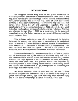 The Philippine flag has undergone several changes throughout history. It was first designed by Emilio Aguinaldo and others during their exile in Hong Kong. The flag, known as "The Sun and the Stars", featured a white triangle, blue and red stripes, a sun with eight rays, and three stars. This flag was first flown on June 12, 1898 and served as the national flag until 1901. Debate continues around the exact shade of blue used on different historical versions of the flag. The current flag design was established by law in 1998 and features a royal blue color.