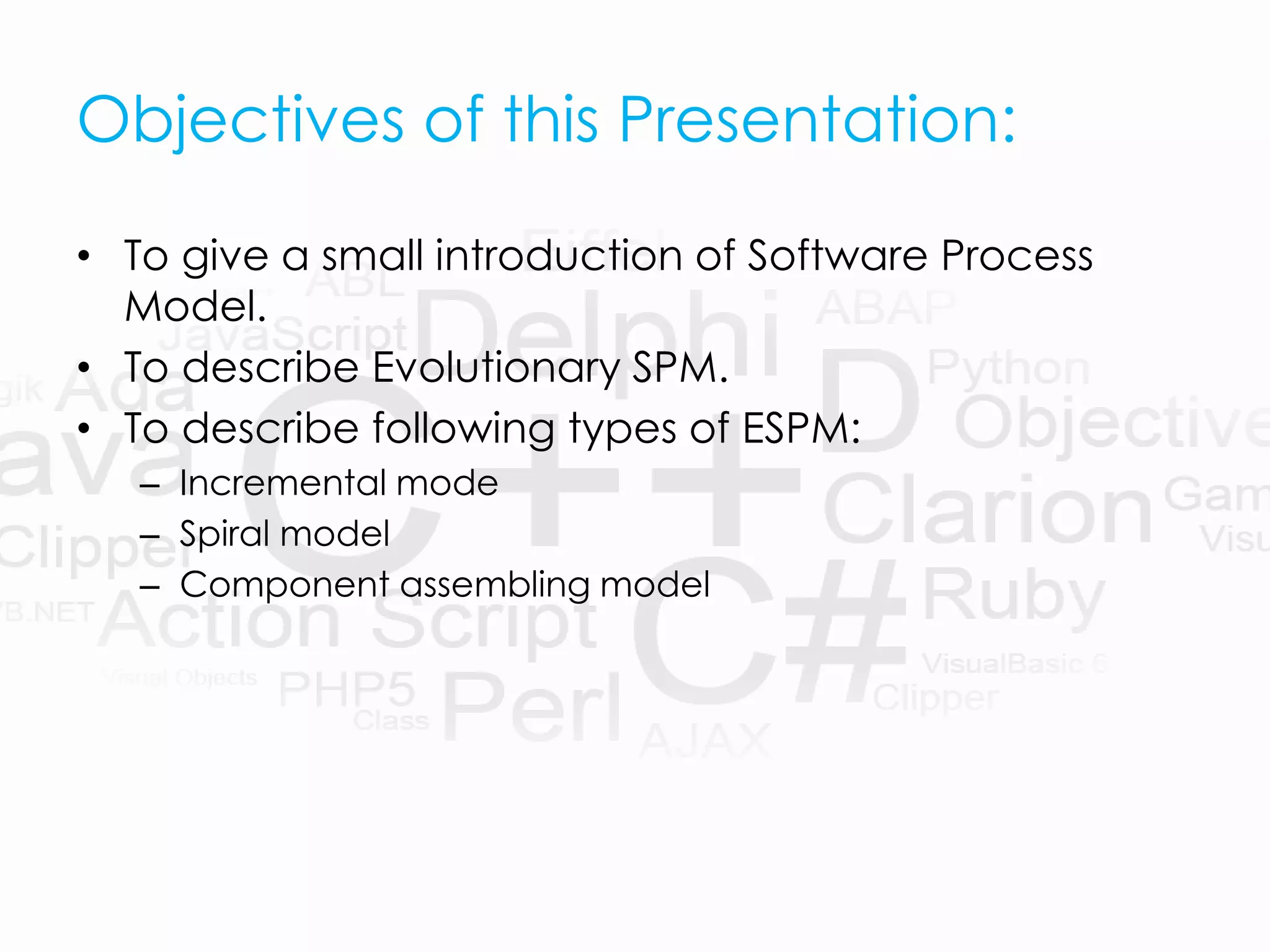 The presentation introduces software process models and specifically focuses on evolutionary software process models (ESPM), which are defined as iterative models that allow software engineers to develop increasingly complete versions of software. It highlights three main types of ESPM: incremental model, spiral model, and component assembly model, each with its own pros and cons. Additionally, the document compares these models with traditional linear process models like the waterfall and prototyping models.