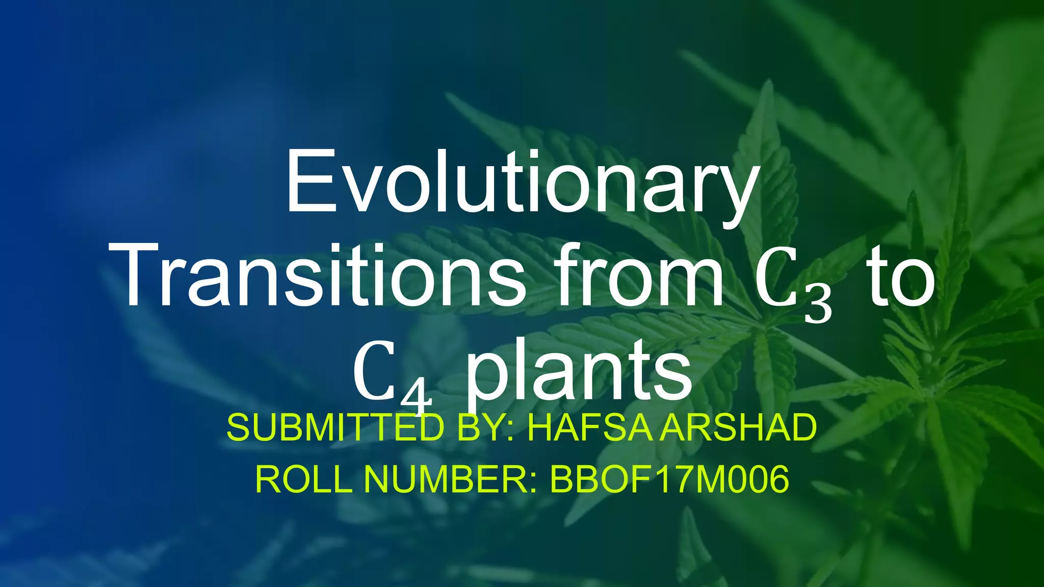 The document discusses the evolutionary transition of plants from C3 to C4 photosynthesis, outlining the adaptations that allow C4 plants to thrive in hot, dry environments. C3 plants primarily fix carbon dioxide through a 3-carbon compound but suffer from inefficiencies due to photorespiration, whereas C4 plants utilize a 4-carbon compound and specialized leaf anatomy to optimize carbon fixation and minimize water loss. The advantages of C4 plants include higher photosynthetic rates, reduced water loss, and increased adaptability to extreme temperatures, making them more efficient in certain climatic conditions.