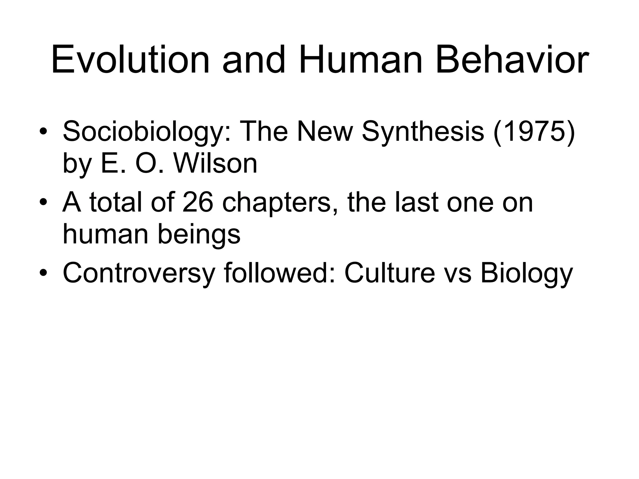 1) E.O. Wilson's 1975 book introduced sociobiology and sparked controversy over the influence of biology vs culture on human behavior.