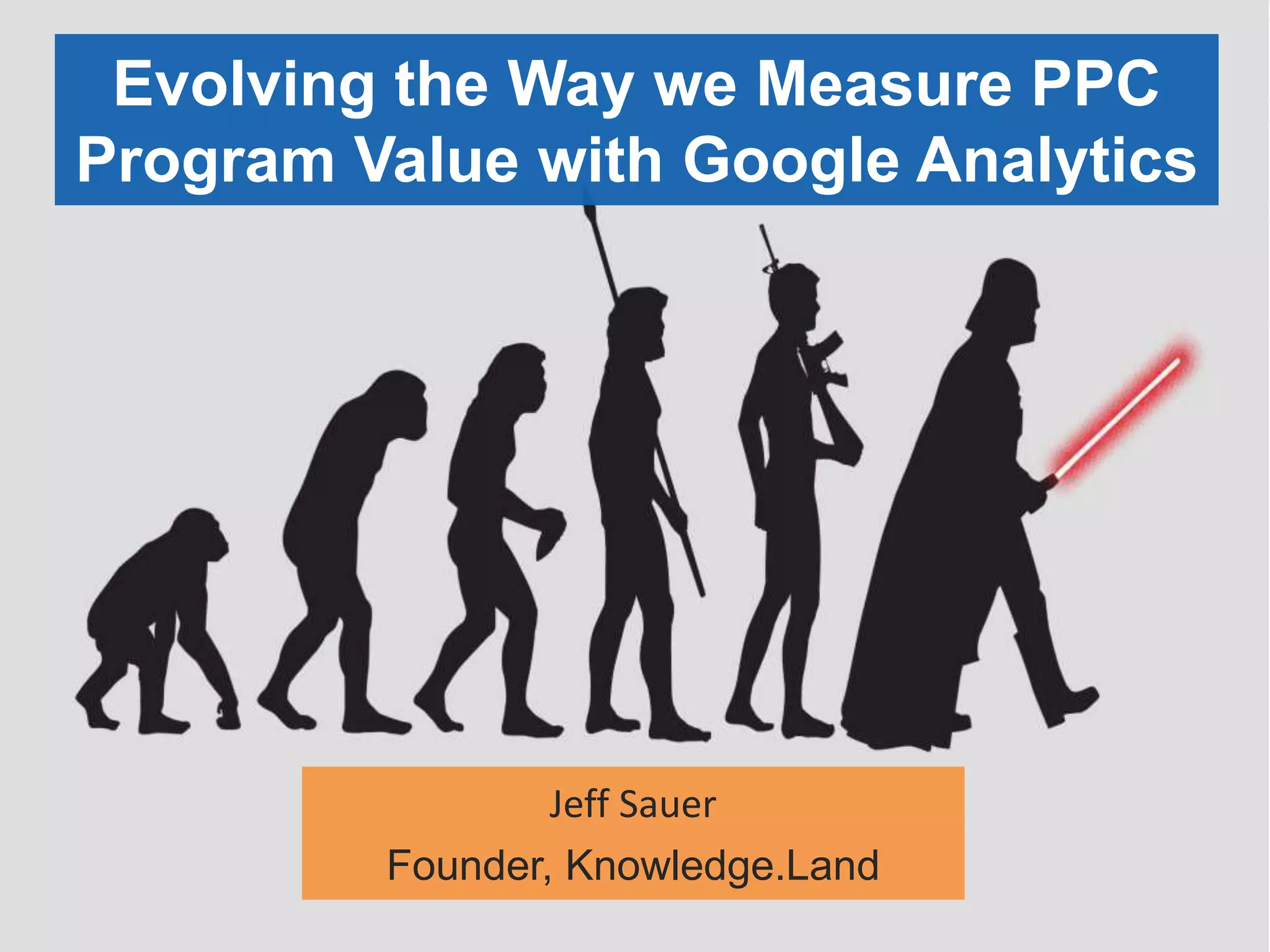 The document discusses the evolution of measuring PPC program value using Google Analytics, emphasizing the importance of net profit over traditional metrics like CPC and ROAS. It outlines eight steps to improve PPC measurement, including data collection, cost data import, custom dimensions, and proper attribution. The author illustrates the significance of understanding true ROI and lifetime value to make informed budget decisions.