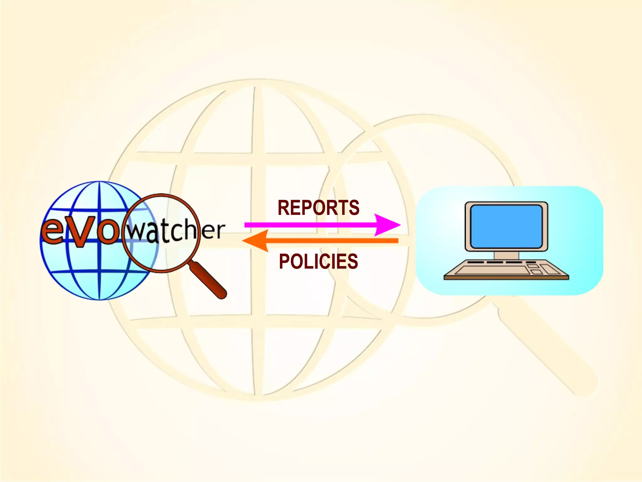 This document outlines the functions of an eVowatcher system, which monitors client networks and computers for any violations of policies or inappropriate activities and generates reports. It can block access to websites, software, documents and activities that do not comply with policies and sends reports to relevant departments.