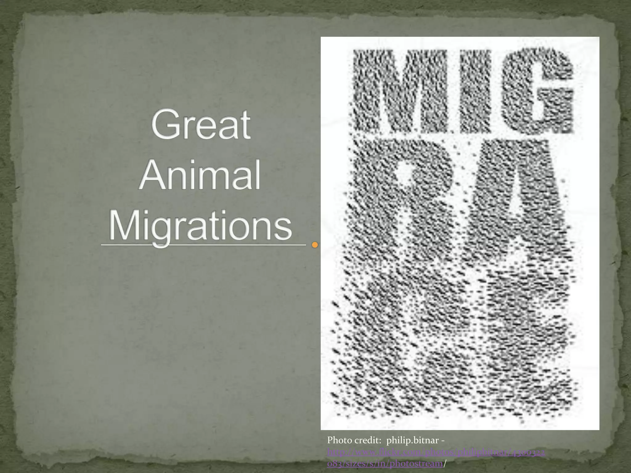 Great Animal Migrations discusses different types of animal migration such as seasonal, latitudinal, and reproductive migrations. It provides examples of seasonal migrations including monarch butterflies traveling between Canada/US and Mexico, and gray whales migrating between Arctic waters and Mexico. The document also addresses how human impacts like habitat loss and climate change threaten animal migrations, and suggests actions people can take to help migrations like tracking migrations, creating wildlife habitats, and reducing waste.