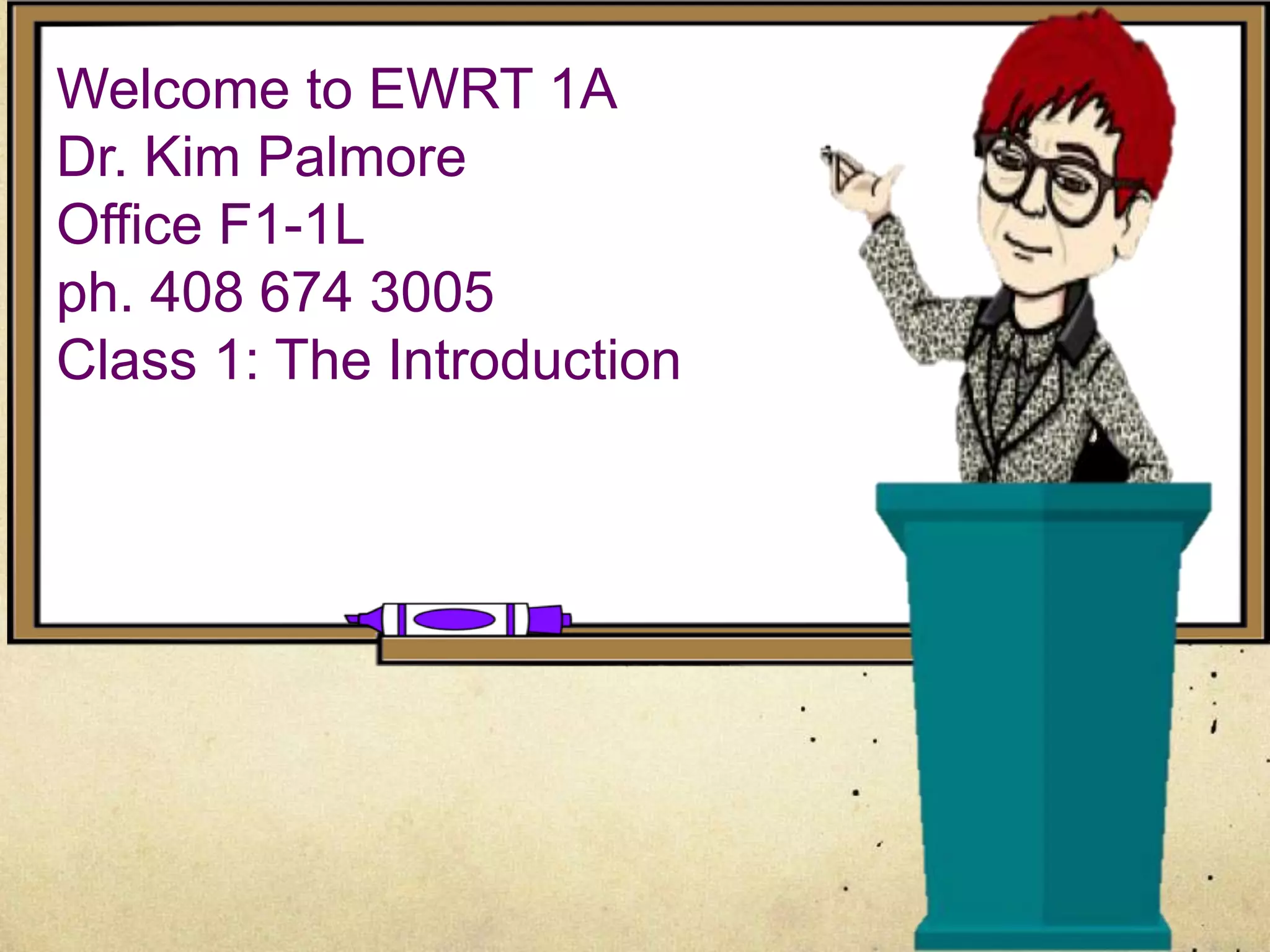 This document provides an overview of the key information for the EWRT 1A hybrid class. It introduces the instructor, Dr. Kim Palmore, and covers the course description, syllabus, assignments, policies, and schedule. The class will meet twice a week in person and require additional online work through presentations on Canvas. Students are expected to complete homework posts, essays, and reading assignments. Grades, assignments, modules, and course documents can all be accessed on Canvas. Academic honesty and timely submission of work are stressed.