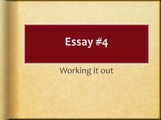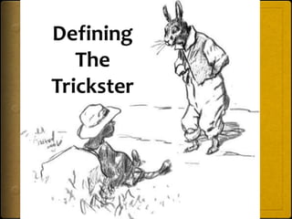 This document provides an agenda for an upcoming class that includes making up or retaking a vocab exam, presentations on term lists, a discussion on trickster characters, outlining an essay, assessing homework, and film viewing. It also lists due dates for essay revisions, a self-assessment, and a final research paper. Key terms are defined related to transgender identity and experience. The prompt for Essay #4 asks students to analyze trickster characters and tales from assigned readings, considering whether they meet the definition of a trickster and what purpose they might serve. Students are instructed to outline their response and thesis for the essay.