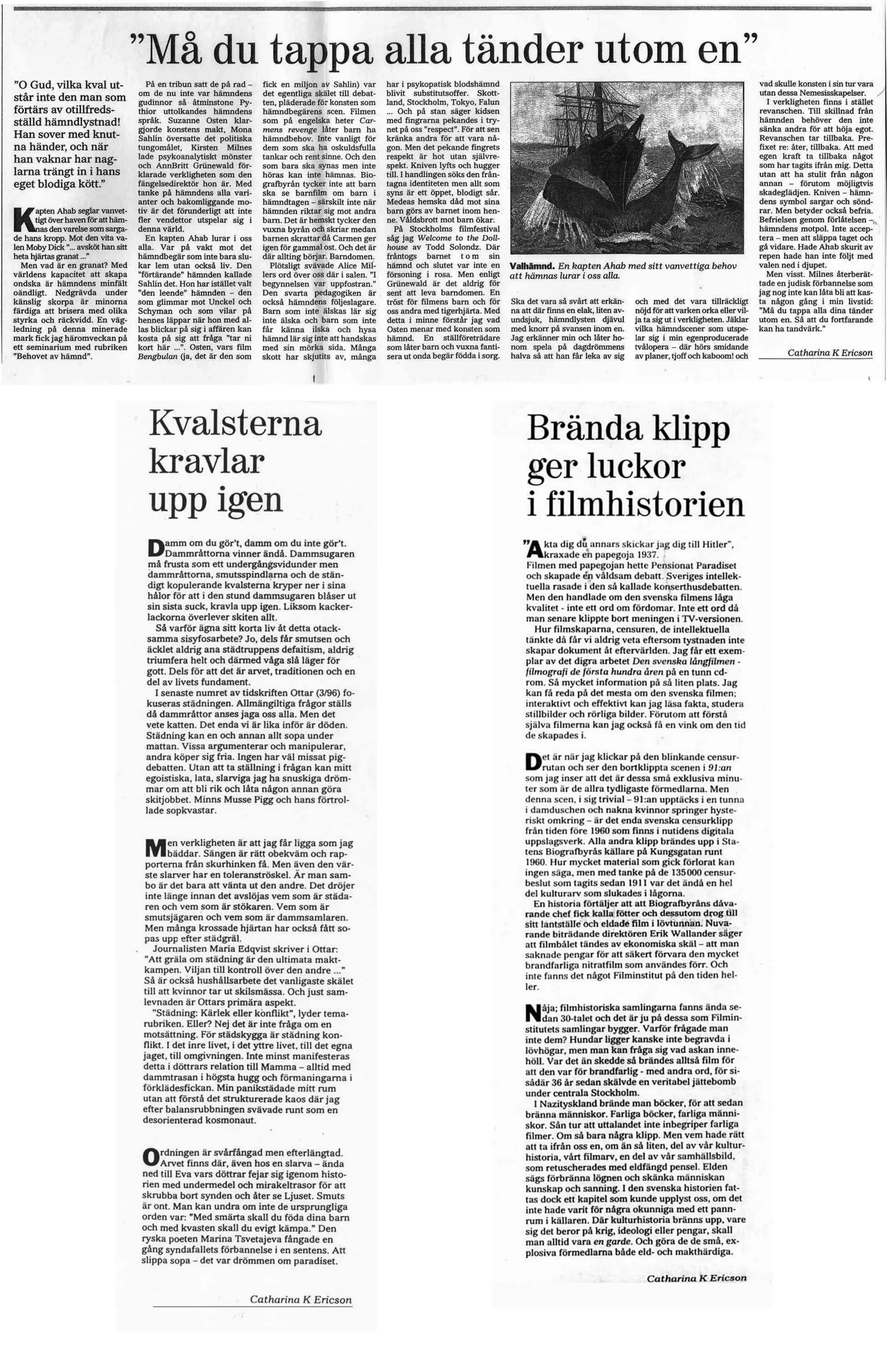 Exempel från första frilansperioden (90-tal): från mappen: Kulturmaterial, krönikor, Göteborgs-Posten.