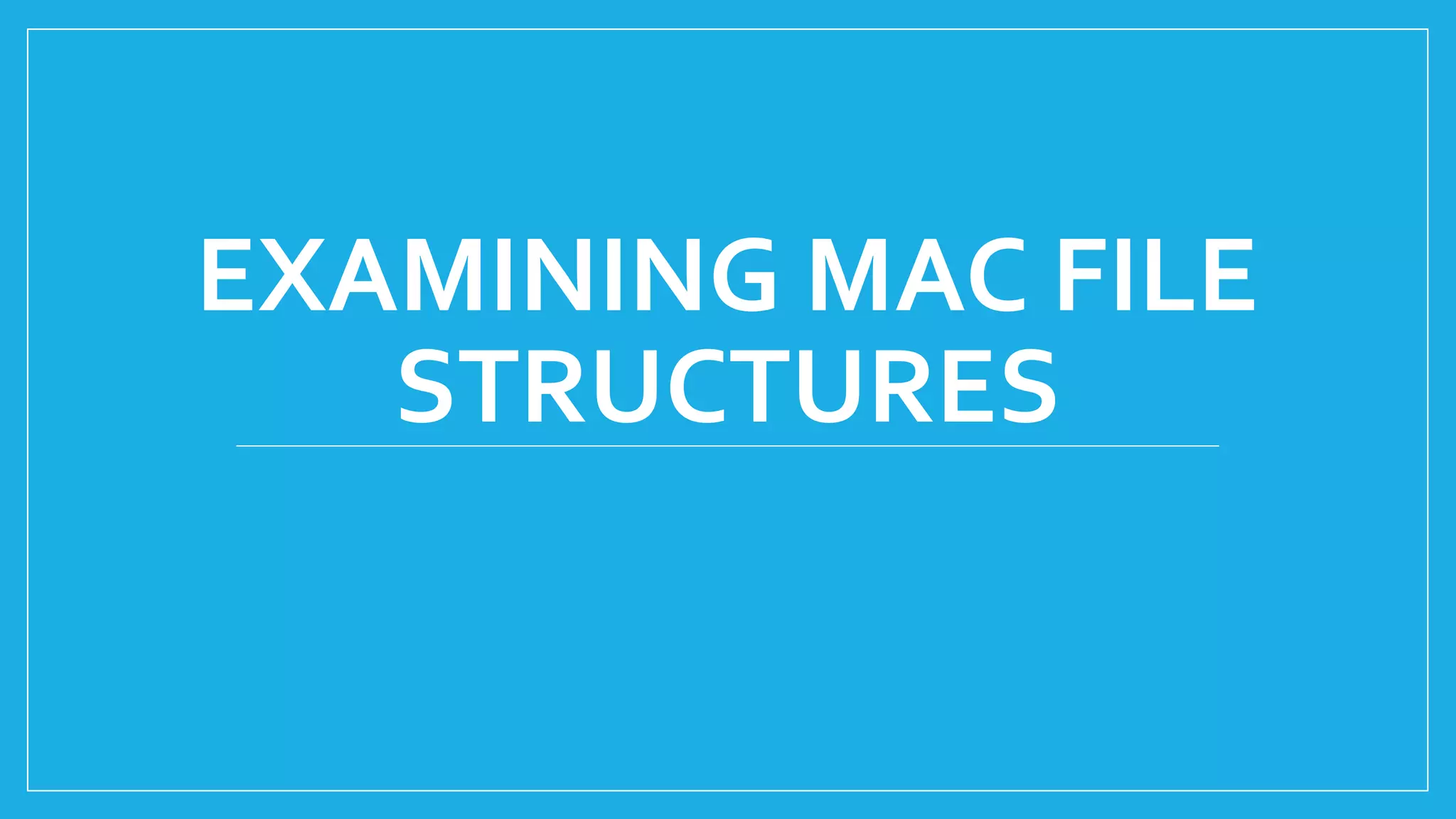 The document discusses Mac file structures and forensic acquisition methods. It explains that before OS X, Mac used HFS and HFS+ file systems, and that a Mac file consists of a data fork and resource fork. It also outlines that a volume stores files and has allocation blocks, and that plist files store application preferences. Acquiring images from Mac systems can be challenging due to difficult physical drive access.