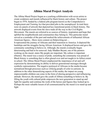 The document presents various topics ranging from crafting essays to analyzing social issues and historical projects. It highlights challenges in structuring essays, the significance of the Albina mural project in reflecting black history, and societal issues like juvenile delinquency. Additionally, it touches on personal reflections on public figures and the dynamics of relationships, emphasizing the need for effective communication and understanding in various contexts.