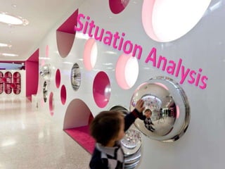 This document analyzes the situation of Mattel, a toy company headquartered in California that sells toys globally through mass retailers and toy stores. It discusses Mattel's product lines, international presence, pricing strategy, and promotional activities. It also performs a SWOT and external analysis, and identifies Mattel's flat sales growth compared to competitors as a problem. Three solutions are proposed: continuing to strengthen Barbie through new campaigns and stores; expanding internationally; and launching a new marketing campaign educating parents on the benefits of toys. The decision is to combine these strategies to strengthen Mattel's brands, enter new markets, and revamp advertising.