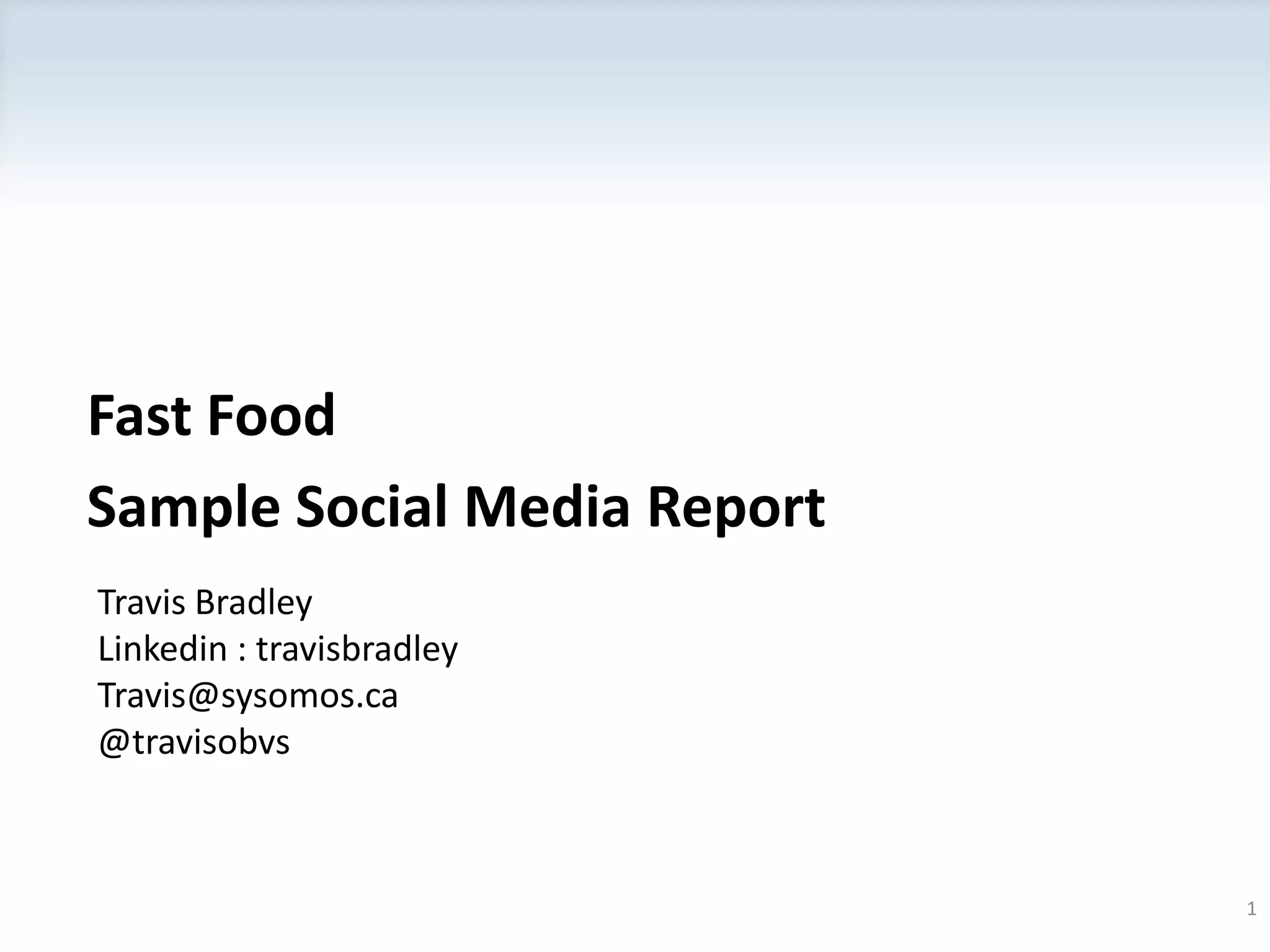 This social media report analyzes discussions around fast food over a 5 day period. It summarizes the share of voice on different platforms, with the most discussions on Twitter. It also analyzes sentiment and discusses the top 5 menu items, trends in nutrition discussions, top news stories, examples of content and influencers. Key metrics and profiles are provided on influential accounts on Twitter and blogs discussing fast food topics.